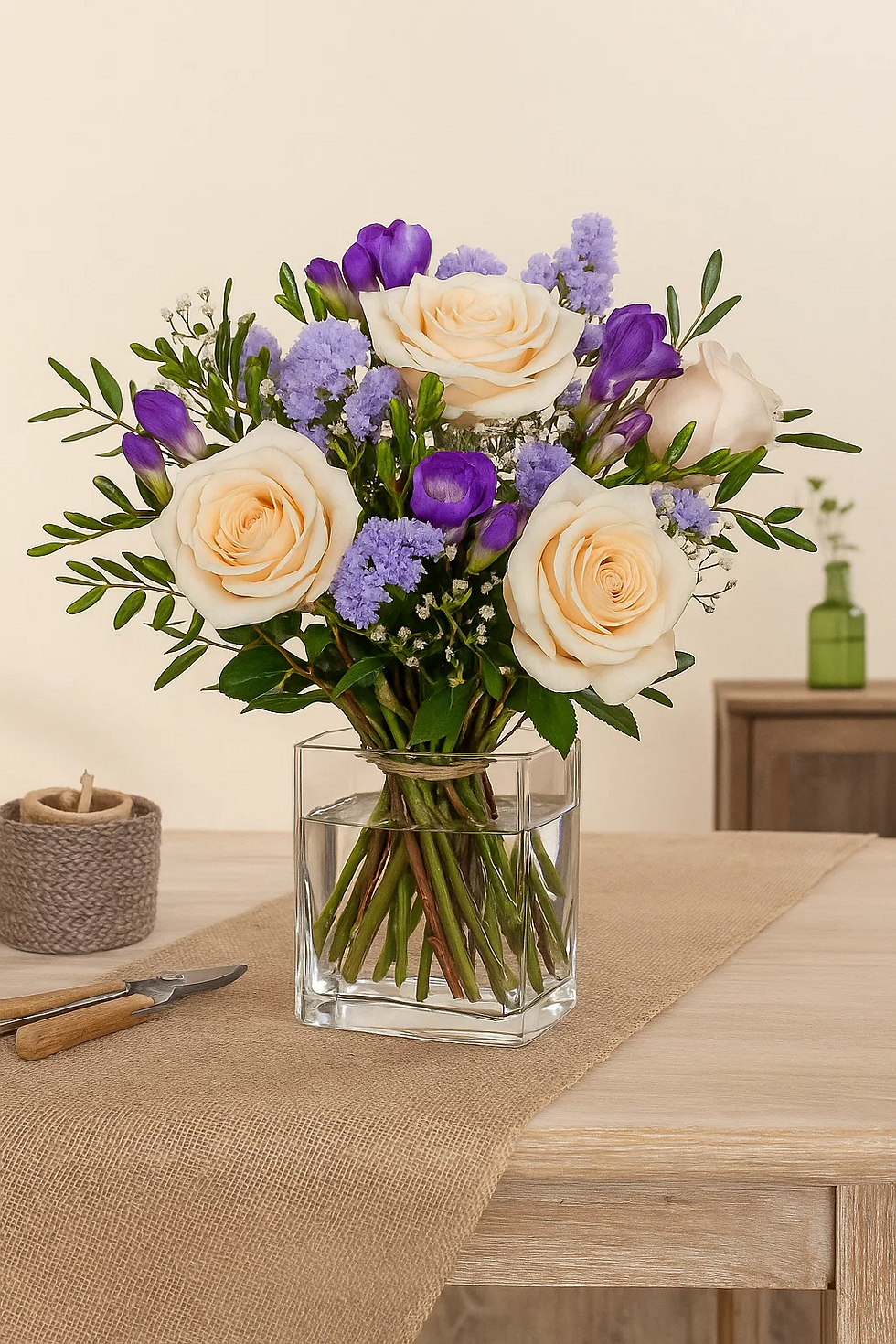 Nous nous engageons à créer des arrangements floraux qui capturent la beauté de saison. Laissez-nous embellir vos moments spéciaux avec notre passion pour les fleurs et notre savoir-faire artisanal.